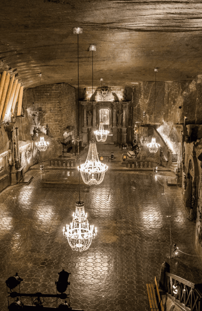 Lata użytkowania sprawiły, że pod wielicką ziemią wyrósł istny labirynt korytarzy i połączeń. Dzisiejsza kopalnia to aż dziewięć poziomów eksploatacyjnych, z których najgłębszy położony jest przeszło trzysta metrów po powierzchnią, natomiast poziom pierwszy zagłębiony jest na blisko siedemdziesiąt metrów. Muzeum Żup Krakowskich to nie tylko fascynująca historia wydobycia i przemysłu górniczego, ale też unikatowe obiekty, takie jak słynna kaplica św. Kingi – spory podziemny kościół, którego wysokość sięga dwunastu metrów. Dodajmy tylko, że świątynia powstała 101 metrów pod powierzchnią ziemi.